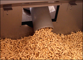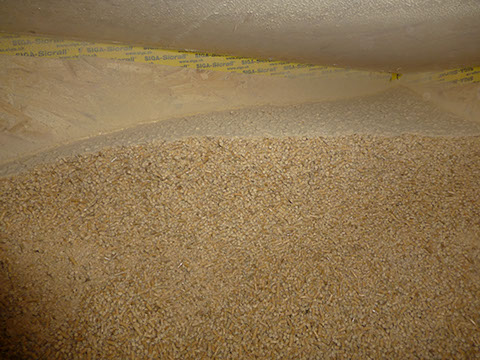 Blick in ein gut gefülltes Pelletlager
