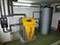 Pelletkessel PiccoPello mit einem Saugsystem, das die Pellets aus einem anderen Gebäude durch eine Erdleitung ansaugt