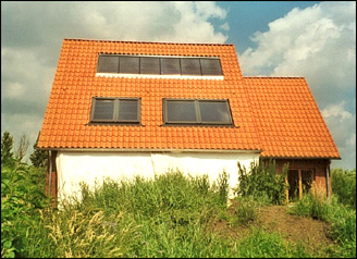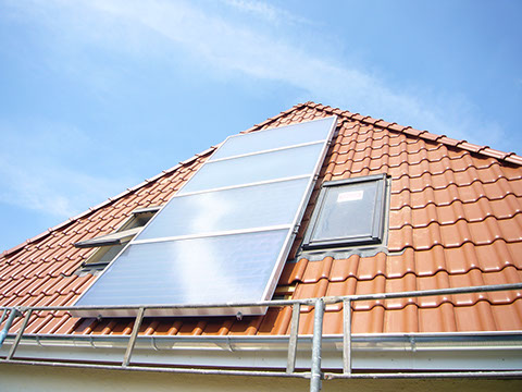 Flachkollektor mit einer Fläche von 6m² in der Dachfläche eines Einfamilienhauses
