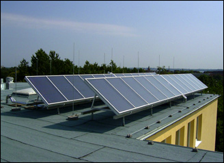 Flachkollektoren mit einer Fläche von 30m² für Beheizung und Warmwasser auf einem Studentenwohnheim