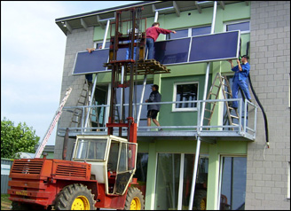 Montage eines 8m² großen Flachkollektors an einem Passivhaus